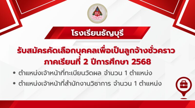 ประกาศรับสมัครคัดเลือกบุคคลเพื่อเป็นลูกจ้างชั่วคราว ภาคเรียนที่ 2 ปีการศึกษา 2568 (ครูอัตราจ้างภาษาอังกฤษ)