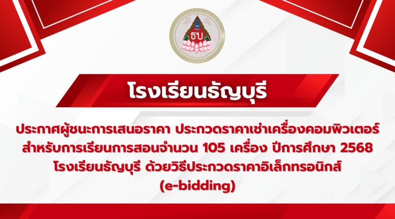 ข่าวประชาสัมพันธ์ การจัดซื้อจัดจ้าง ไม่มีหมวดหมู่ ประกาศผู้ชนะการเสนอราคา ประกวดราคาเช่าเครื่องคอมพิวเตอร์สำหรับการเรียนการสอน จำนวน 105 เครื่อง ปีการศึกษา 2568 โรงเรียนธัญบุรี ด้วยวิธีประกวดราคาอิเล็กทรอนิกส์ (e-bidding) ตุลาคม 3, 2025ตุลาคม 3, 2025 admin Read more