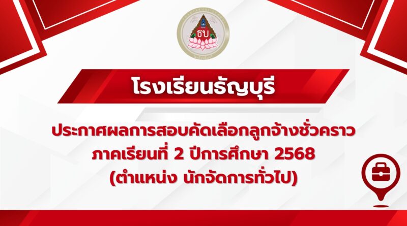 ข่าวประชาสัมพันธ์ การจัดซื้อจัดจ้าง ไม่มีหมวดหมู่ ประกาศผลการสอบคัดเลือกลูกจ้างชั่วคราว ภาคเรียนที่ 2 ปีการศึกษา 2568 (ตำแหน่ง นักจัดการทั่วไป) ตุลาคม 14, 2025ตุลาคม 14, 2025 admin Read more