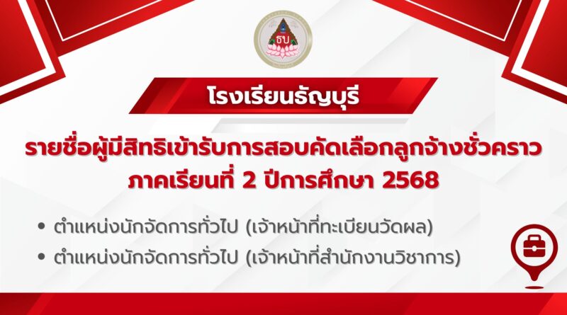 ข่าวประชาสัมพันธ์ การจัดซื้อจัดจ้าง ไม่มีหมวดหมู่ ประกาศผลการสอบคัดเลือกลูกจ้างชั่วคราว ภาคเรียนที่ 2 ปีการศึกษา 2568 ธันวาคม 17, 2025ธันวาคม 17, 2025 admin Read more