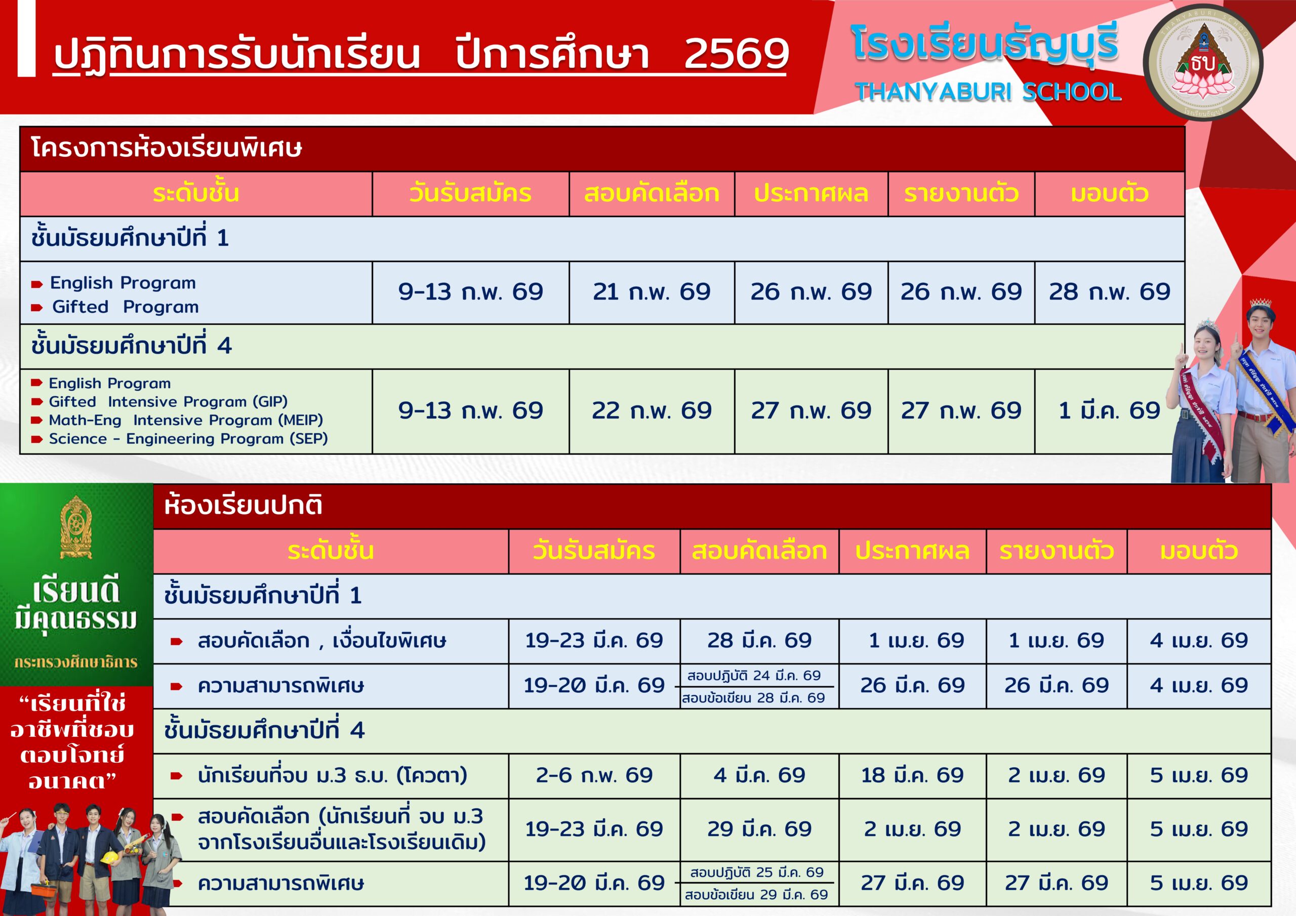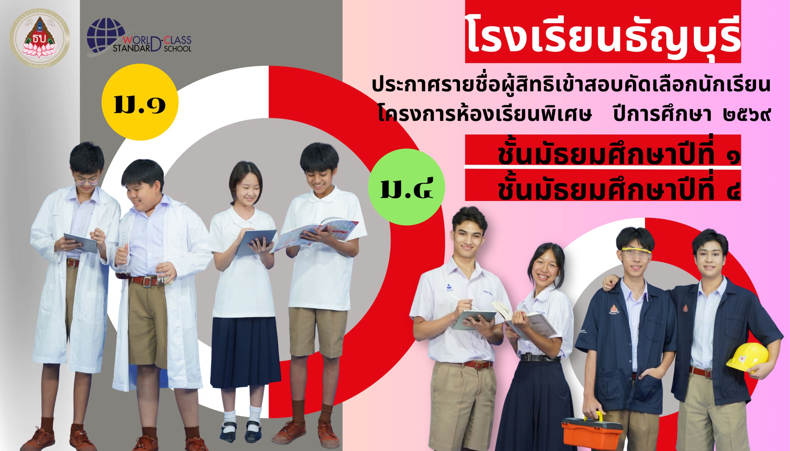 ประกาศรายชื่อผู้มีสิทธิสอบ ม.1 และ ม.4 โครงการห้องเรียนพิเศษ ปีการศึกษา 2569